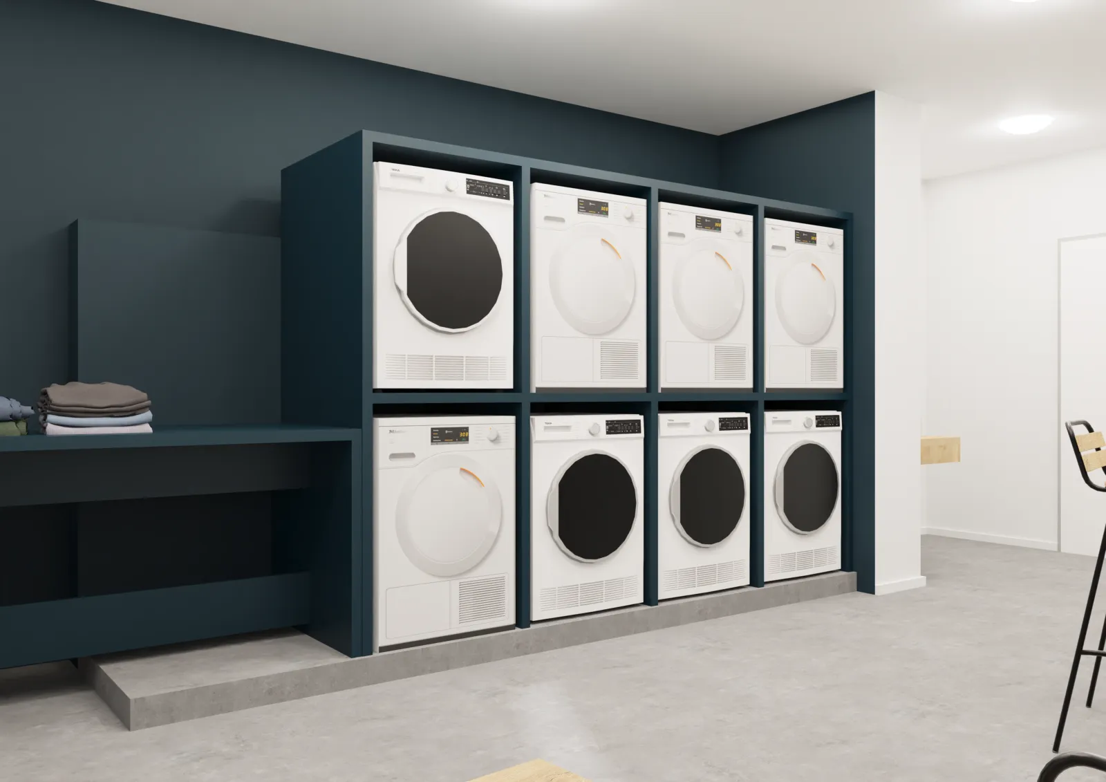 Auch die Zweiradmobilität spielt eine große Rolle: Der Mobilitätshub ist mit E-Bikes, Lasten-Pedelecs und Fahrradanhängern für die gemeinschaftliche Nutzung ausgestattet. Eine integrierte Fahrradwerkstatt ermöglicht Reparaturen direkt vor Ort.