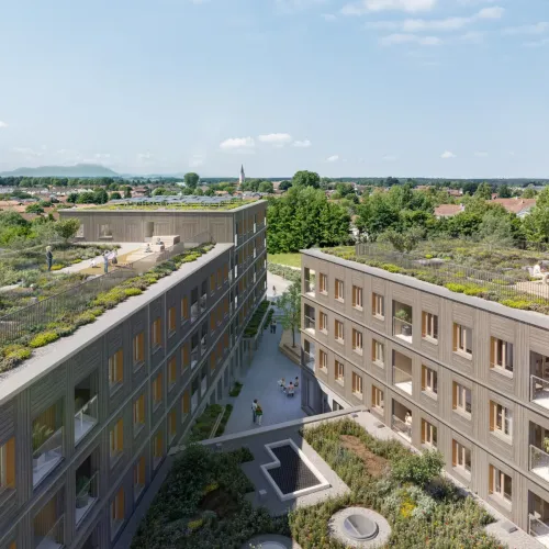 Auch beim Einsatz erneuerbarer Energien setzt das HOKI-Living Holzkirchen neue Maßstäbe im nachhaltigen Wohnbau. Das Projekt ist ein Referenzobjekt für energieeffizientes und klimafreundliches Bauen und gilt schon heute als Vorbild moderner Architektur mit Nachhaltigkeitsanspruch.