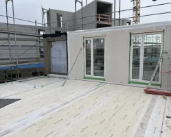 In Kombination mit einer effizienten Gebäudehülle, 3-fach-Verglasung und kontrollierter Wohnraumlüftung mit Wärmerückgewinnung entsteht ein behagliches Raumklima bei niedrigem Energieverbrauch. Diese Holz-Hybridbauweise verbindet Nachhaltigkeit, Präzision und Komfort – robust in der Nutzung, angenehm im Alltag und zukunftsweisend im Wohnbau.
