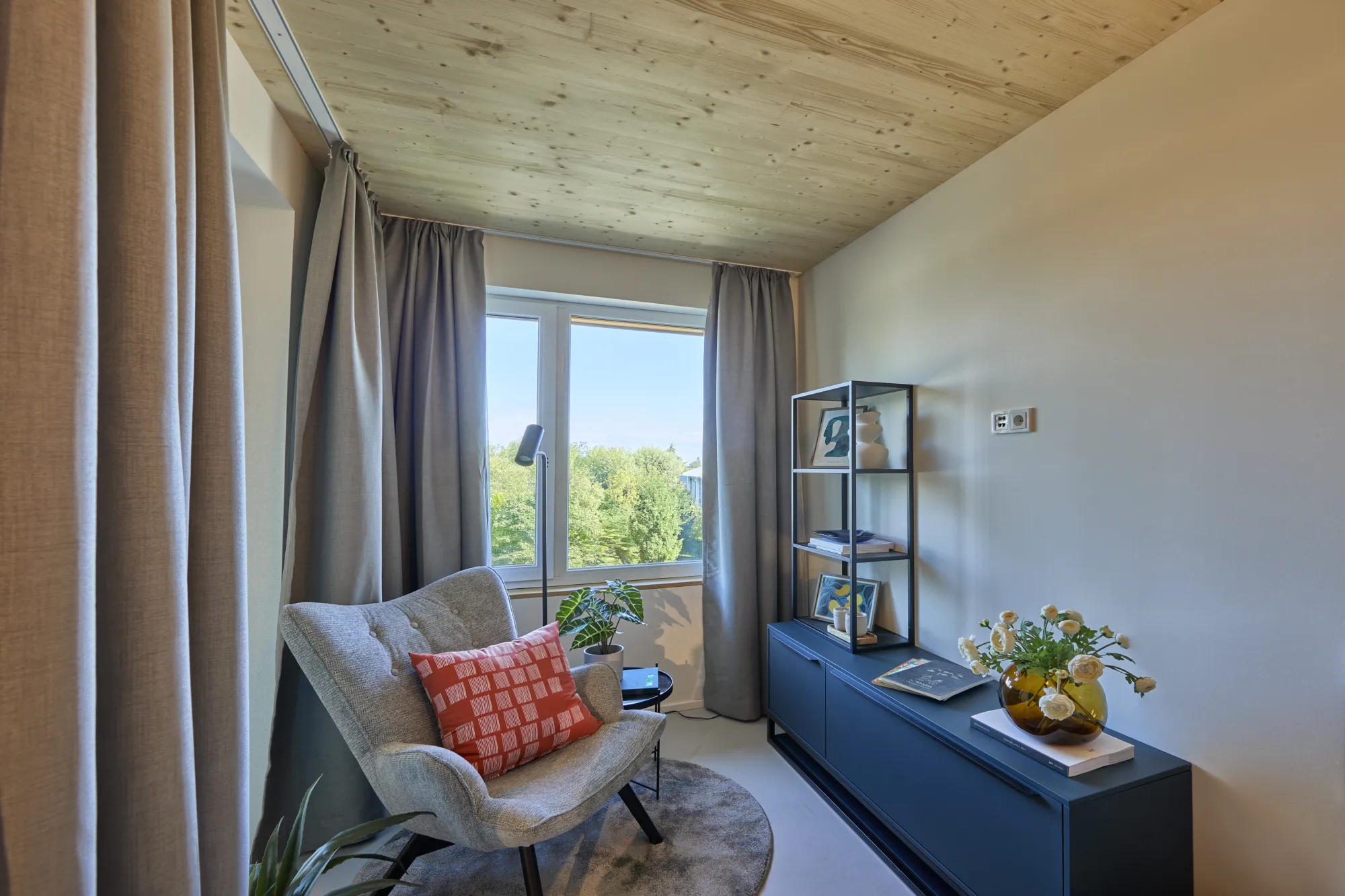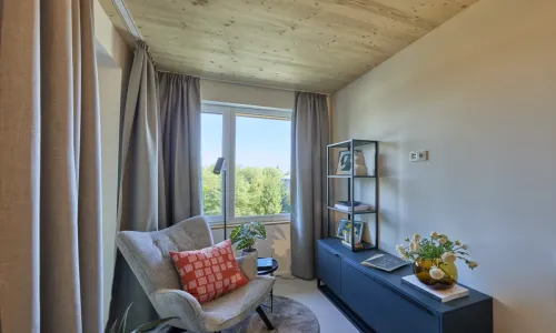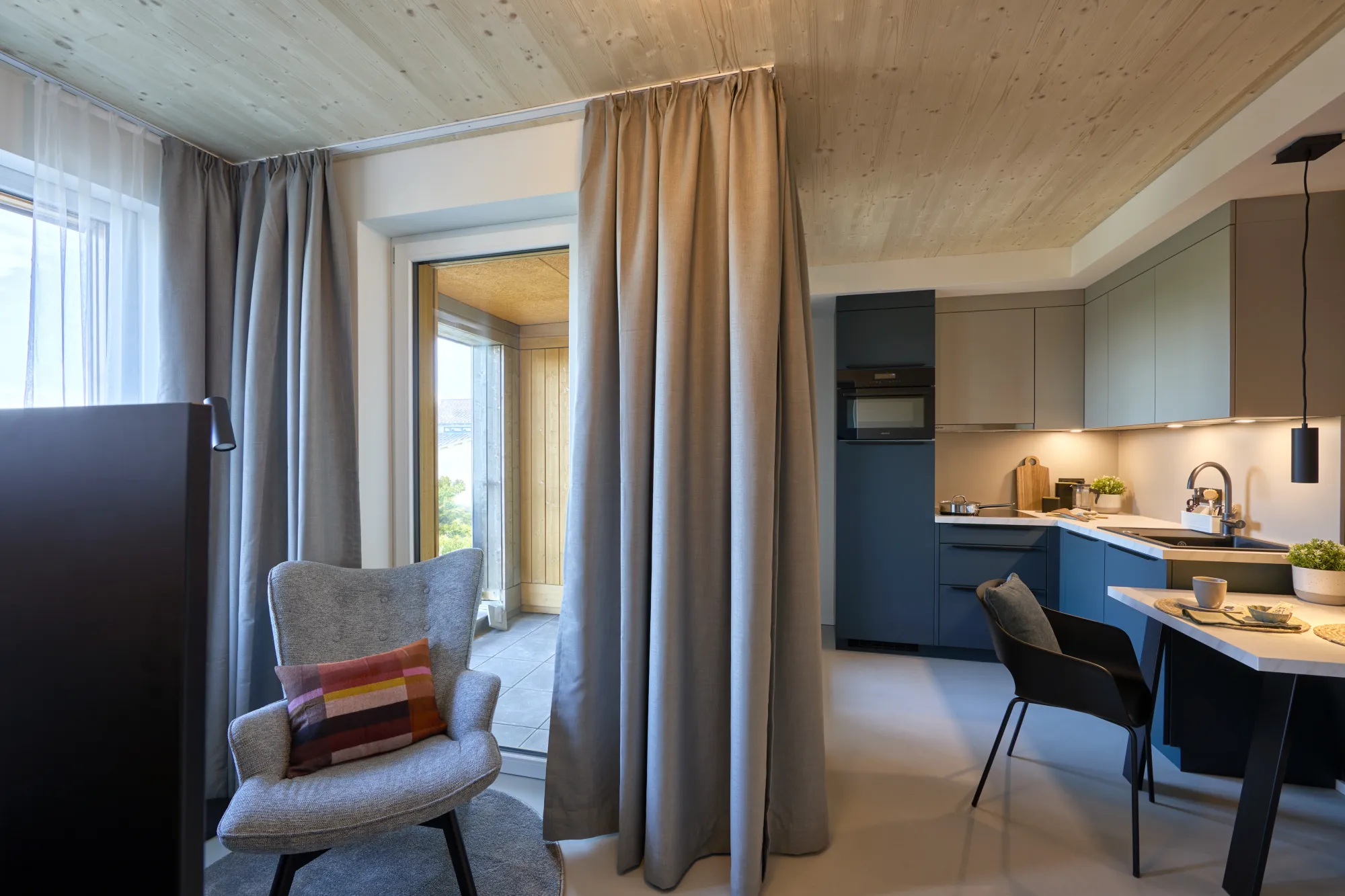Vom kompakten Apartment bis zur 4‑Zimmer‑Wohnung: HOKI‑Living bietet durchdachte Grundrisse mit klaren Linien, viel Stauraum und privaten Loggien. Wer schnell starten möchte, wählt die Kompakt‑Typen als möbliertes Apartment – mit Küche, Stauraum‑Modulen und stimmigem Licht. Holzhybridbauweise und hochwertige Gebäudehülle sorgen für ruhige Akustik und behagliches Raumklima. Gemeinschaftliche Dachterrassen erweitern den Wohnraum nach draußen. Kurz: ein Zuhause, das funktioniert – und gut aussieht.