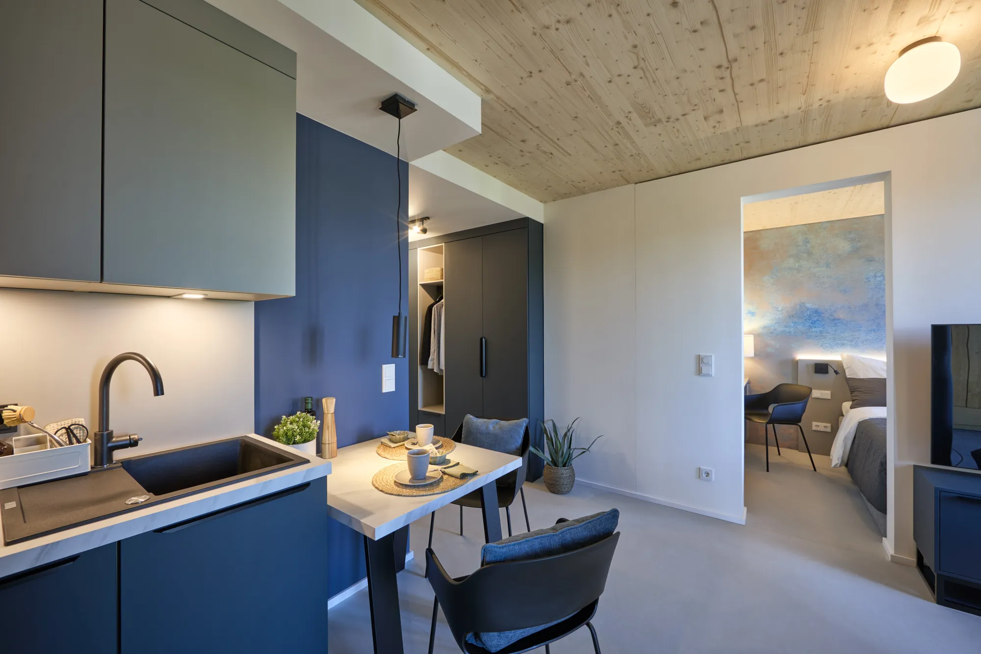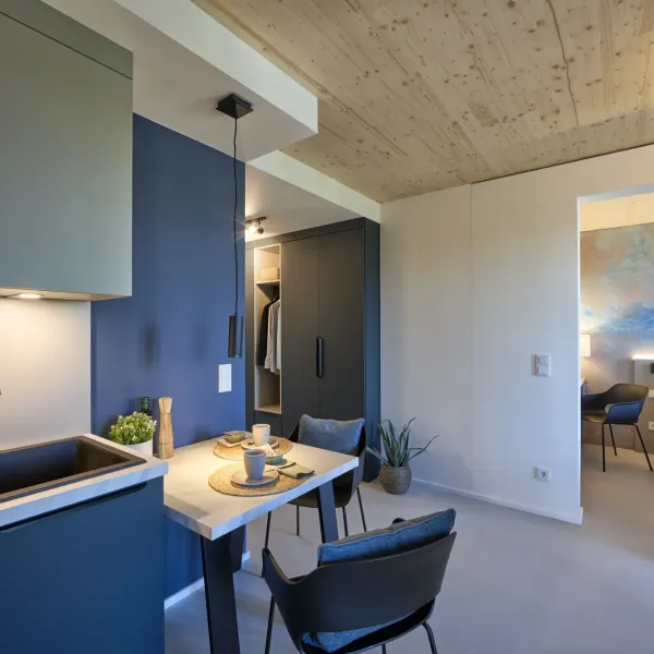 Material, Form und Farbe sind harmonisch aufeinander abgestimmt und schaffen ein ästhetisches Gesamtbild, das Raumgefühl und Stilbewusstsein verbindet. Das Zusammenspiel von kompakten Grundrissen und maßgeschneiderter Möblierung sorgt für optimale Flächennutzung, hohe Wohnqualität und macht die möblierten Apartments zu einer attraktiven Kapitalanlage in Holzkirchen.