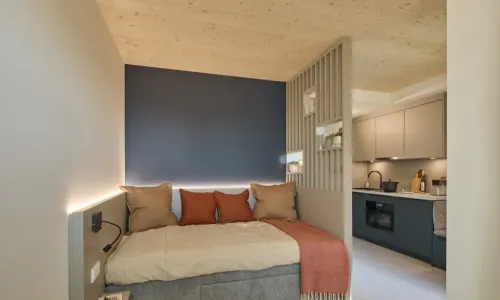 Die 1- und 1,5-Zimmer-Apartments mit bis zu 30 m² Wohnfläche werden im HOKI-Living Holzkirchen von Haus aus attraktiv und durchdacht möbliert. Das Möblierungskonzept wurde von einem erfahrenen Innenarchitekten entwickelt und vereint Design, Funktionalität und Wohnkomfort.